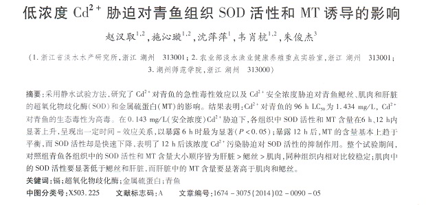 低濃度Cd2+脅迫對青魚組織SOD活性和MT誘導(dǎo)的影響