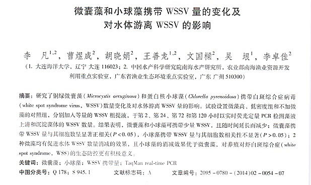 微囊藻和小球藻攜帶WSSV量的變化及對(duì)水體游離WSSV的影響