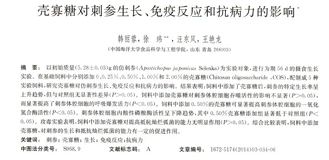 殼寡糖對刺參生長、免疫反應(yīng)和抗病力的影響