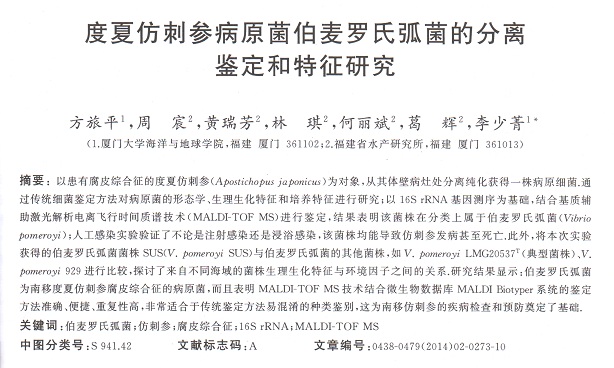 度夏仿刺參病原菌伯麥羅氏弧菌的分離鑒定和特征研究