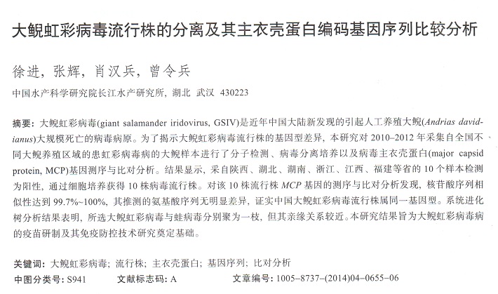 大鯢虹彩病毒流行株的分離及其主衣殼蛋白編碼基因序列比較分析