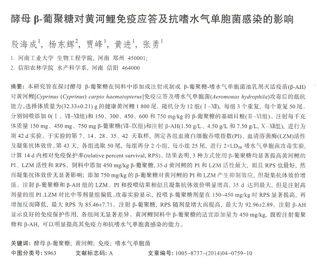 酵母β-葡聚糖對黃河鯉免疫應(yīng)答及抗嗜水氣單胞菌感染的影響