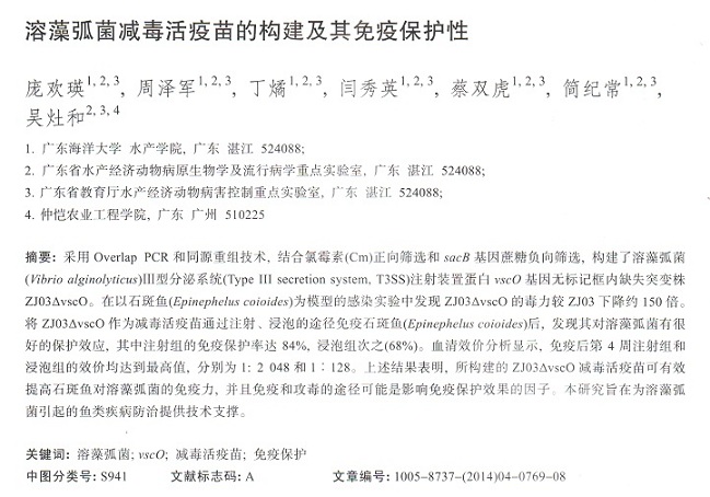 溶藻弧菌減毒活疫苗的構(gòu)建及其免疫保護(hù)性