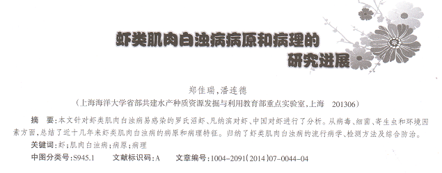 蝦類肌肉白濁病病原和病理的研究進展