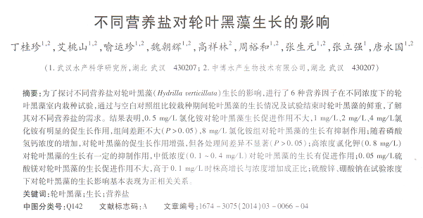 不同營養(yǎng)鹽對輪葉黑藻生長的影響