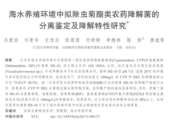 海水養(yǎng)殖環(huán)境中擬除蟲菊酯類農(nóng)藥降解菌的分離鑒定及降解特性研究