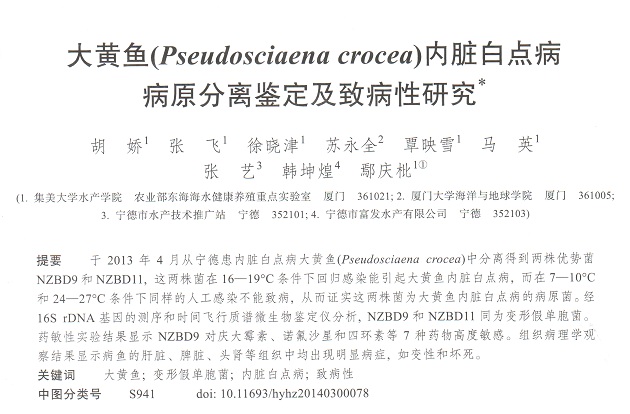 大黃魚(Pseudosciaena crocea)內(nèi)臟白點(diǎn)病病原分離鑒定及致病性研究