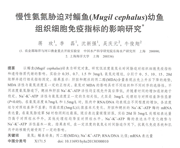 慢性氨氮脅迫對(duì)鯔魚(yú)(Mugil cephalus)幼魚(yú)組織細(xì)胞免疫指標(biāo)的影響研究