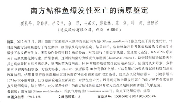 南方鲇稚魚爆發(fā)性死忙的病原鑒定