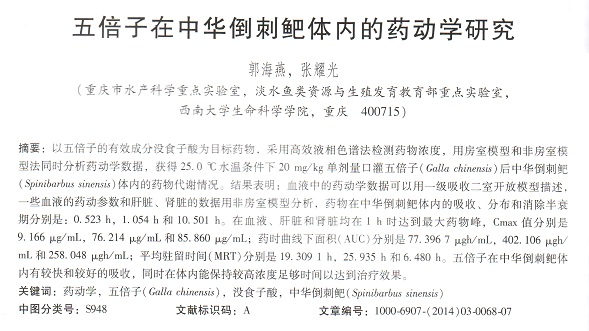 五倍子在中華倒刺鲃體內(nèi)的藥動(dòng)學(xué)研究