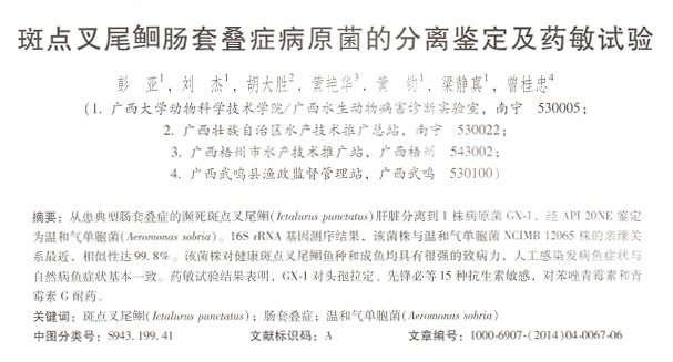 斑點叉尾鮰腸套疊癥病原菌的分離鑒定及藥敏試驗