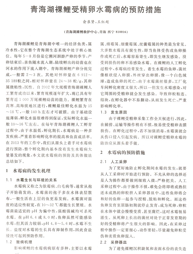 青海湖裸鯉受精卵水霉病的預(yù)防措施