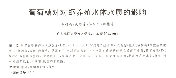 葡萄糖對對蝦養(yǎng)殖水體水質(zhì)的影響