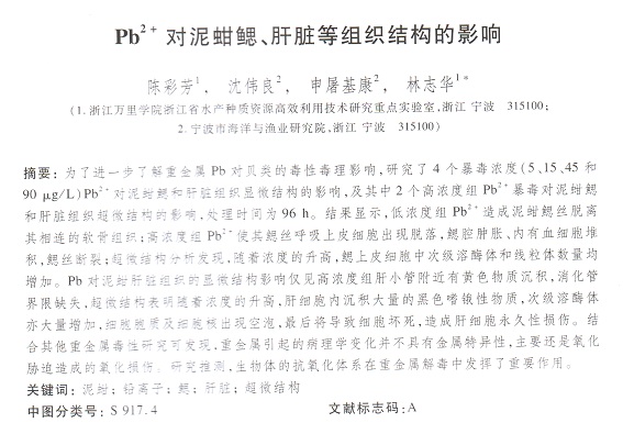 Pb2+對泥蚶鰓、肝臟等組織結(jié)構(gòu)的影響