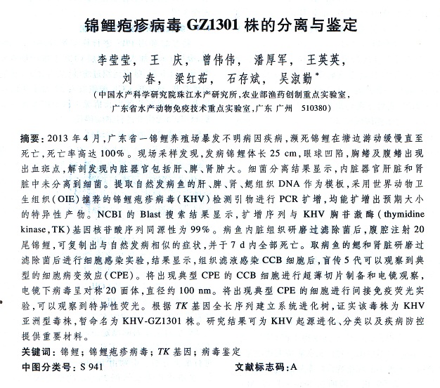 錦鯉皰疹病毒 GZ1301 柱的分離與鑒定