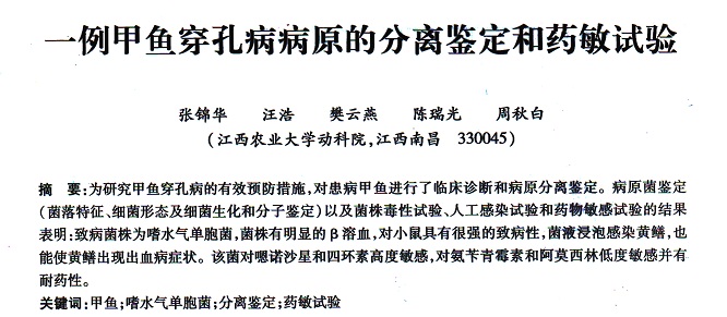 一例甲魚穿孔病病原的分離鑒定和藥敏試驗