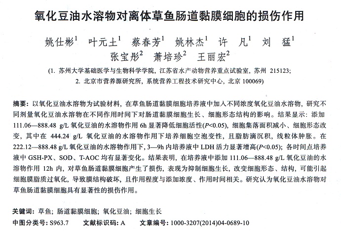 氧化豆油水溶物對離體草魚腸道黏膜細胞的損傷作用