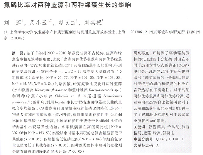 氮磷比率對兩種藍藻和兩種綠藻生長的影響