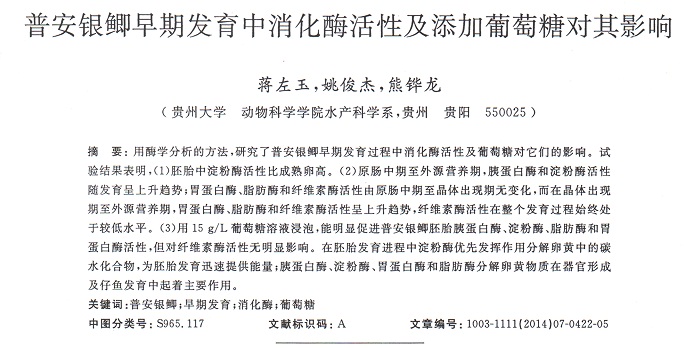 普安銀鯽早期發(fā)育中消化酶活性及添加葡萄糖對(duì)其影響