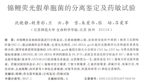 錦鯉熒光假單胞菌的分離鑒定及藥敏試驗(yàn)