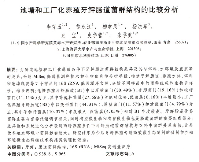 池塘和工廠化養(yǎng)殖牙鲆腸道菌群結(jié)構(gòu)的比較分析