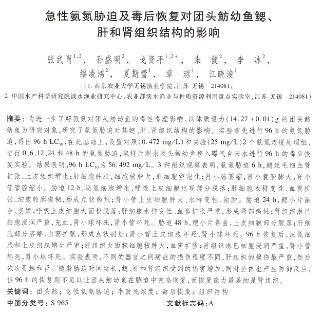急性氨氮脅迫及毒后恢復(fù)對(duì)團(tuán)頭魴幼魚鰓、肝和腎組織結(jié)構(gòu)的影響