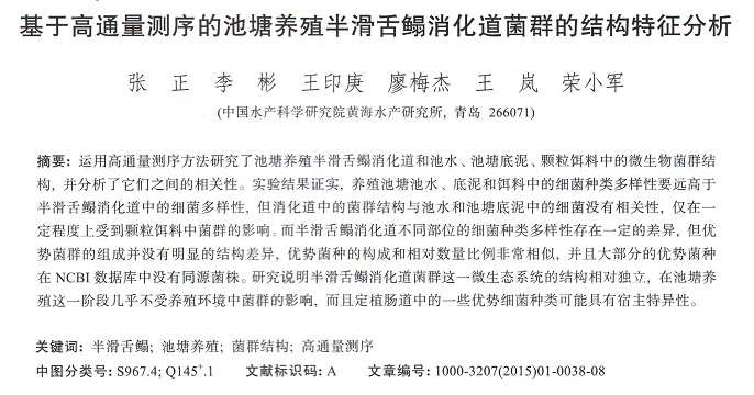基于高通量測序的池塘養(yǎng)殖半滑舌鰨消化道菌群的結(jié)構(gòu)特征分析
