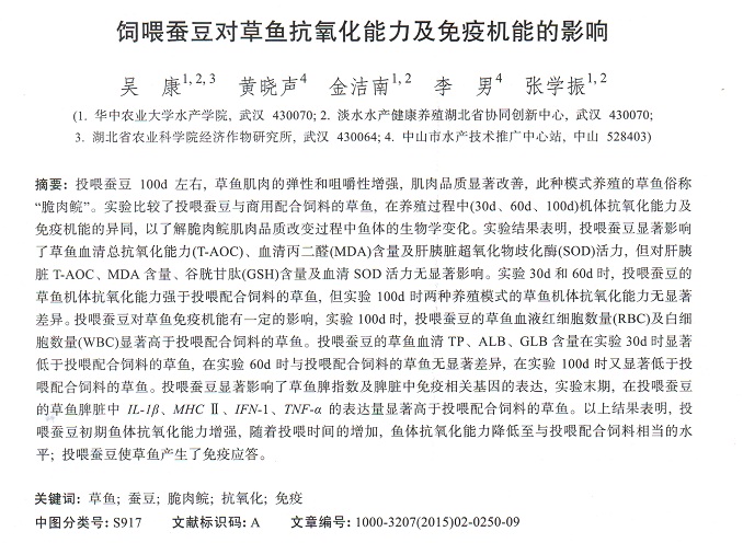 飼喂蠶豆對(duì)草魚抗氧化能力及免疫機(jī)能的影響