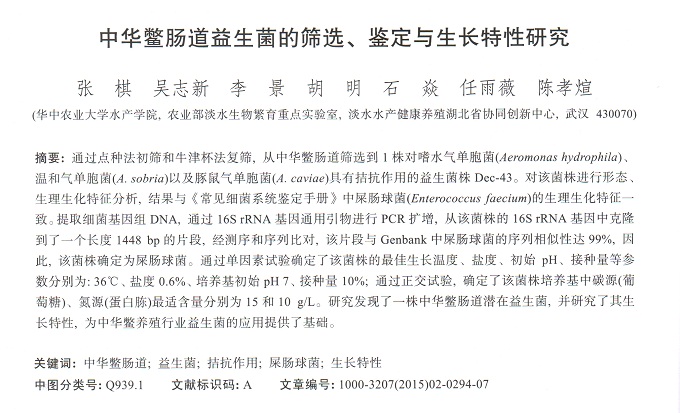 中華鱉腸道益生菌的篩選、鑒定與生長特性研究
