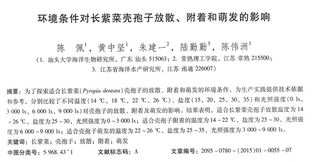 環(huán)境條件對長紫菜殼孢子放散、附著和萌發(fā)的影響