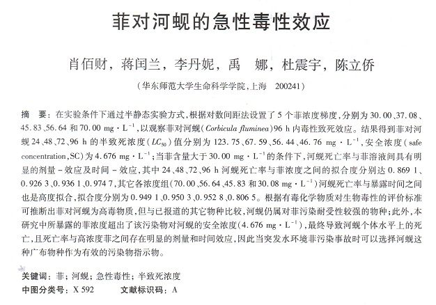 菲對河蜆的急性毒性效應(yīng)