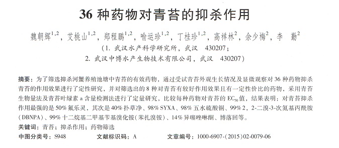 36種藥物對(duì)青苔的抑殺作用