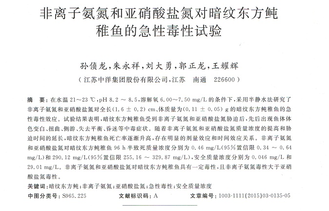 非離子氨氮和亞硝酸鹽氮對暗紋東方鲀稚魚的急性毒性試驗