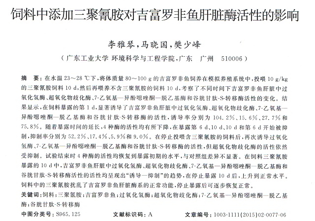 飼料中添加三聚氰胺對吉富羅非魚肝臟酶活性的影響