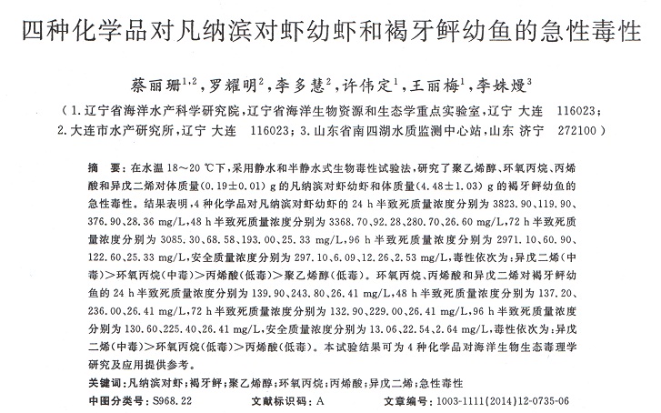 四種化學(xué)品對凡納濱對蝦幼蝦和褐牙鲆幼魚的急性毒性