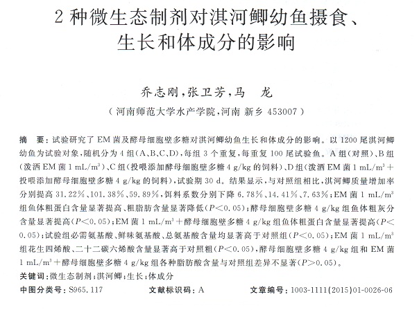 2種微生態(tài)制劑對(duì)淇河鯽幼魚攝食、生長和體成分的影響