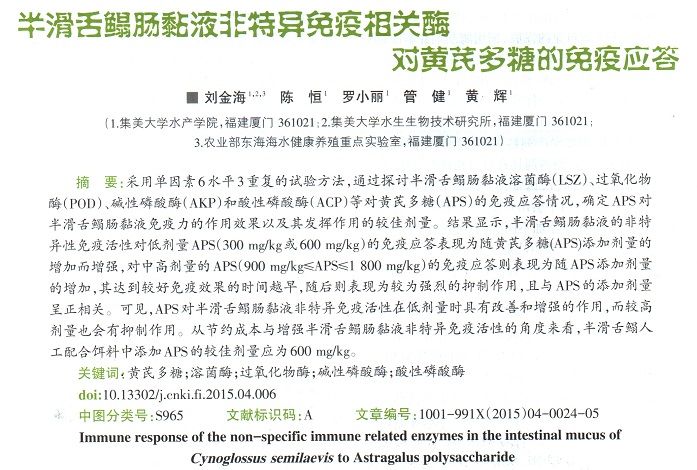 半滑舌鰨腸黏液非特異免疫相關(guān)酶對(duì)黃芪多糖的免疫答應(yīng)