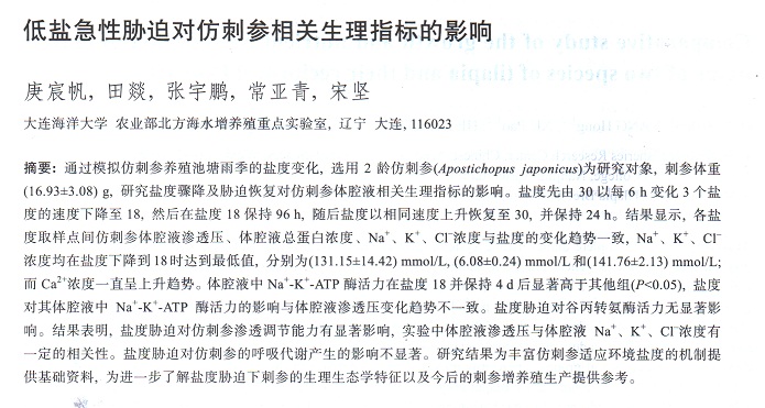 低鹽急性脅迫對仿刺參相關(guān)生理指標的影響