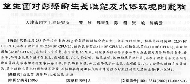 益生菌對(duì)彭澤鯽生長(zhǎng)性能及水體環(huán)境的影響