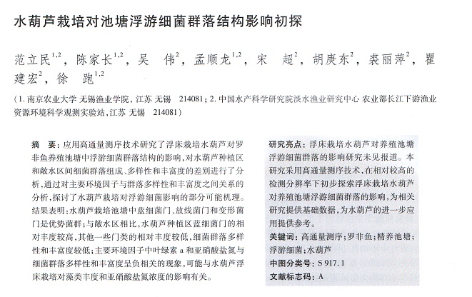 水葫蘆栽培對池塘浮游細(xì)菌群落結(jié)構(gòu)影響初探