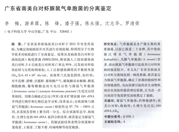 廣東省南美白對(duì)蝦豚鼠氣單胞菌的分離鑒定