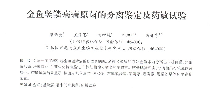 金魚豎鱗病病原菌的分離鑒定及藥敏試驗
