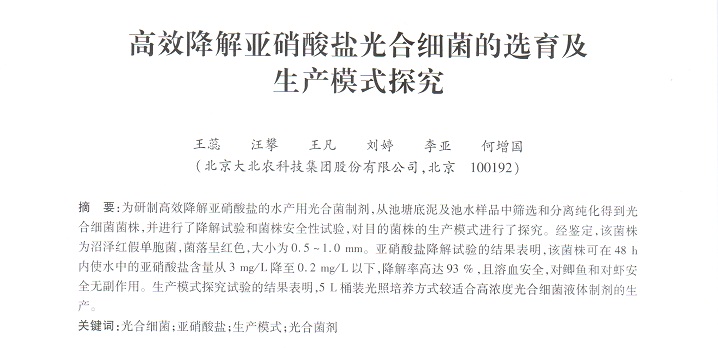 高效降解亞硝酸鹽光合細(xì)菌的選育及生產(chǎn)模式探究