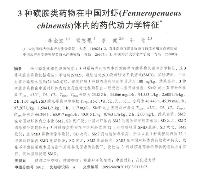 3種磺胺類藥物在中國對蝦(Fenneropenaeus chinensis)體內(nèi)的藥代動力學(xué)特征