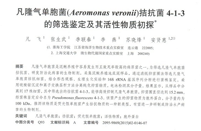 凡隆氣單胞菌(Aeromonas veronii)拮抗菌4-1-3的篩選鑒定及其活性物質(zhì)初探