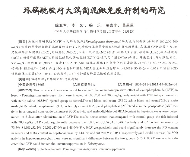 環(huán)磷酰胺對大鱗副泥鰍免疫抑制的研究