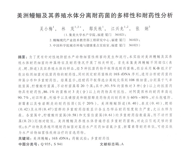 美洲鰻鱺及其養(yǎng)殖水體分離耐藥菌的多樣性和耐藥性分析