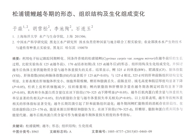 松浦鏡鯉越冬期的形態(tài)、組織結(jié)構(gòu)及生化組成變化