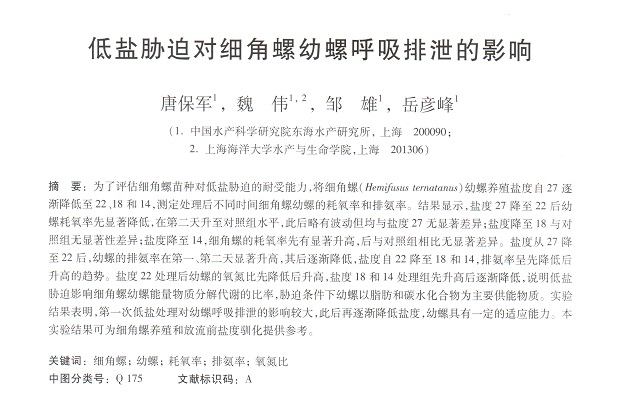 低鹽脅迫對(duì)細(xì)角螺幼螺呼吸排泄的影響