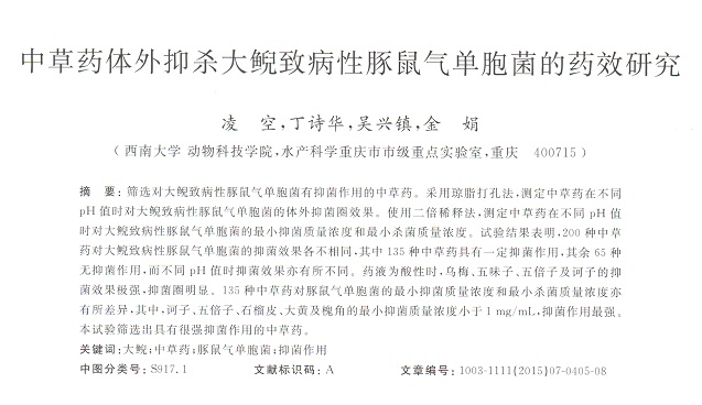 中草藥體外抑殺大鯢致病性豚鼠氣單胞菌的藥效研究